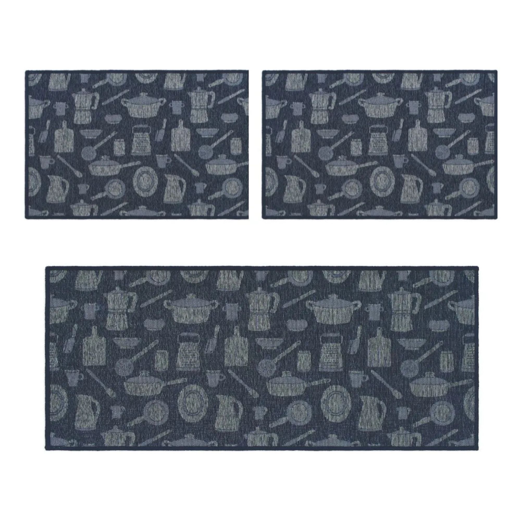 Kit Tapete 3 Peças Funcional Bistrô Azul 20 – J Serrano | Antiderrapante | 6mm | Jacquard Premium