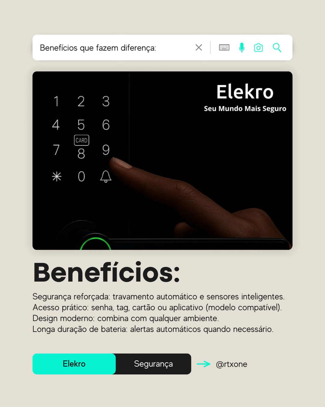 A fechadura digital é o produto que mais chama atenção, abre portas (literalmente) e transmite tecnologia — que é a cara da marca RTX.