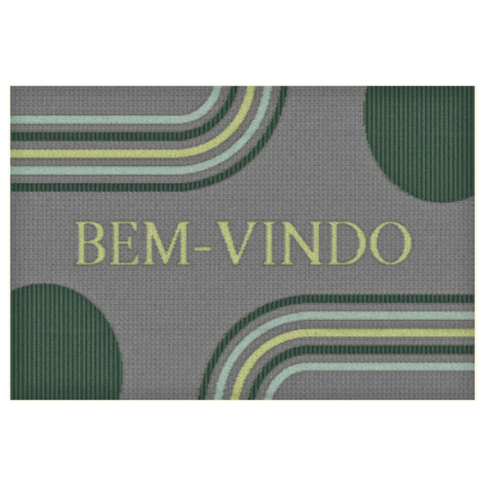 Tapete de Porta "Bem-Vindo" Domani Arcos – 40x60 cm – Cinza com Verde Musgo